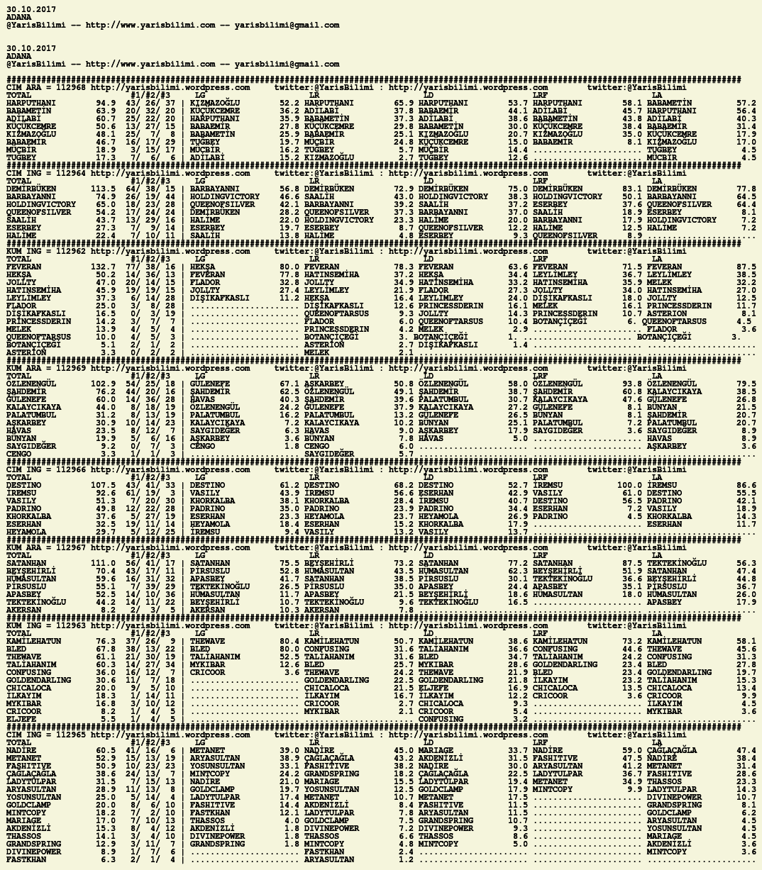 30.10.2017.ADANA tahminleri 30 Pazartesi Eki 2017 Posted by yarisbilimi in adana, yorum ≈ Yorum bırakın Etiketleradana