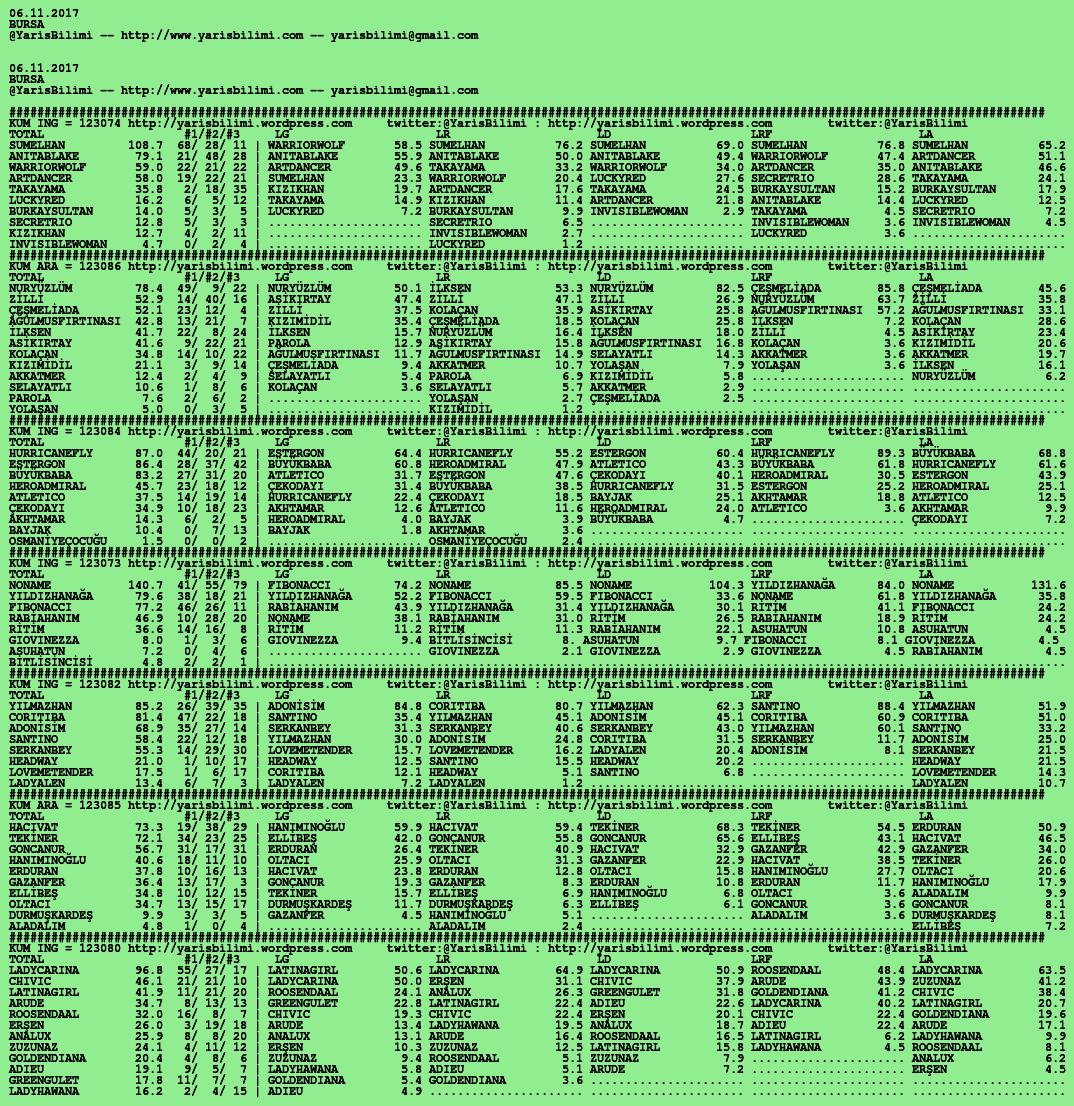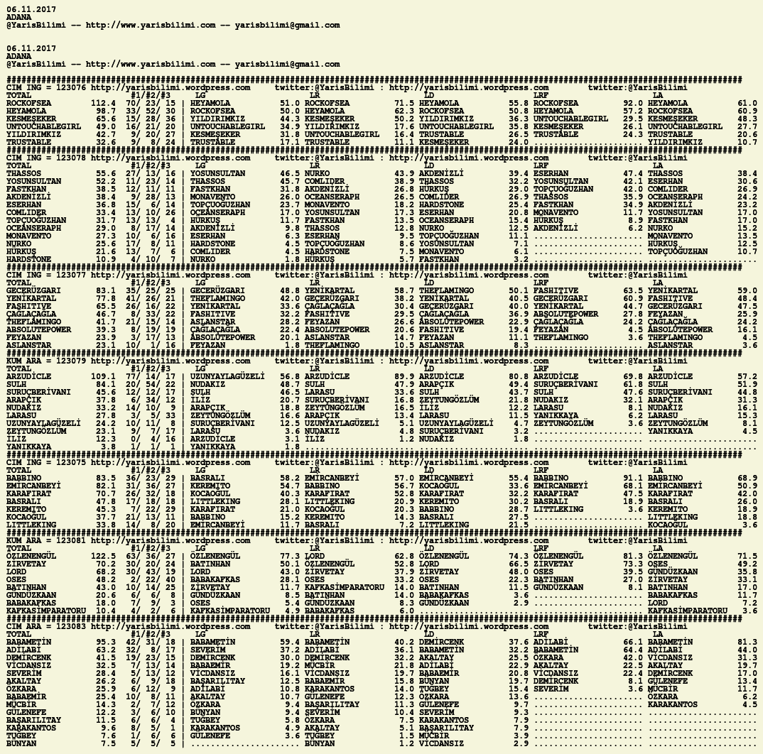 Görsel 06.11.2017.ADANA tahminleri 05 Pazar Kas 2017 Etiketleradana Yazan: yarisbilimi | Filed under adana, yorum ≈ 2 Yorum