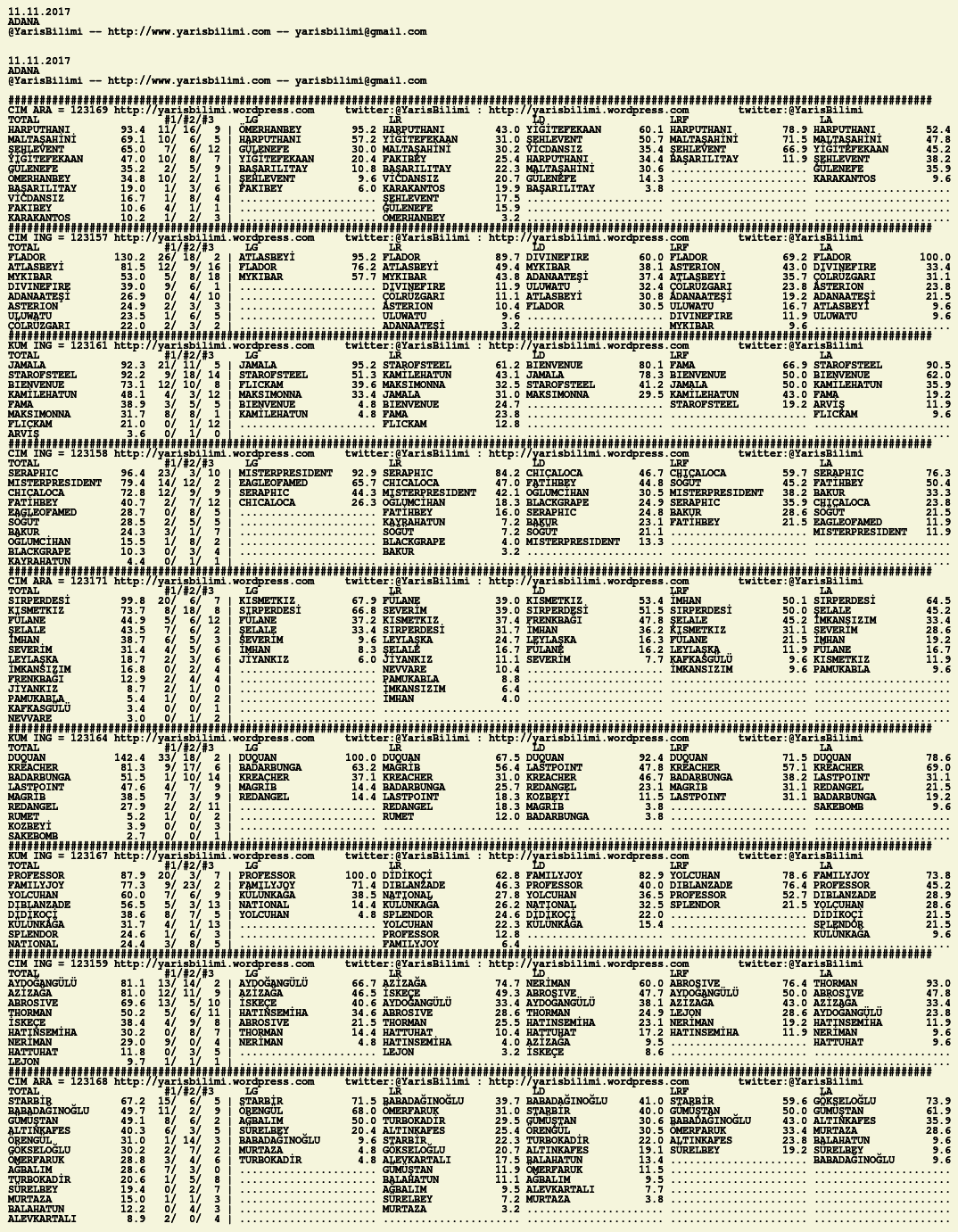 Görsel 11.11.2017.ADANA tahminleri 10 Cuma Kas 2017 Etiketleradana Yazan: yarisbilimi | Filed under adana, yorum ≈ Yorum bırakın