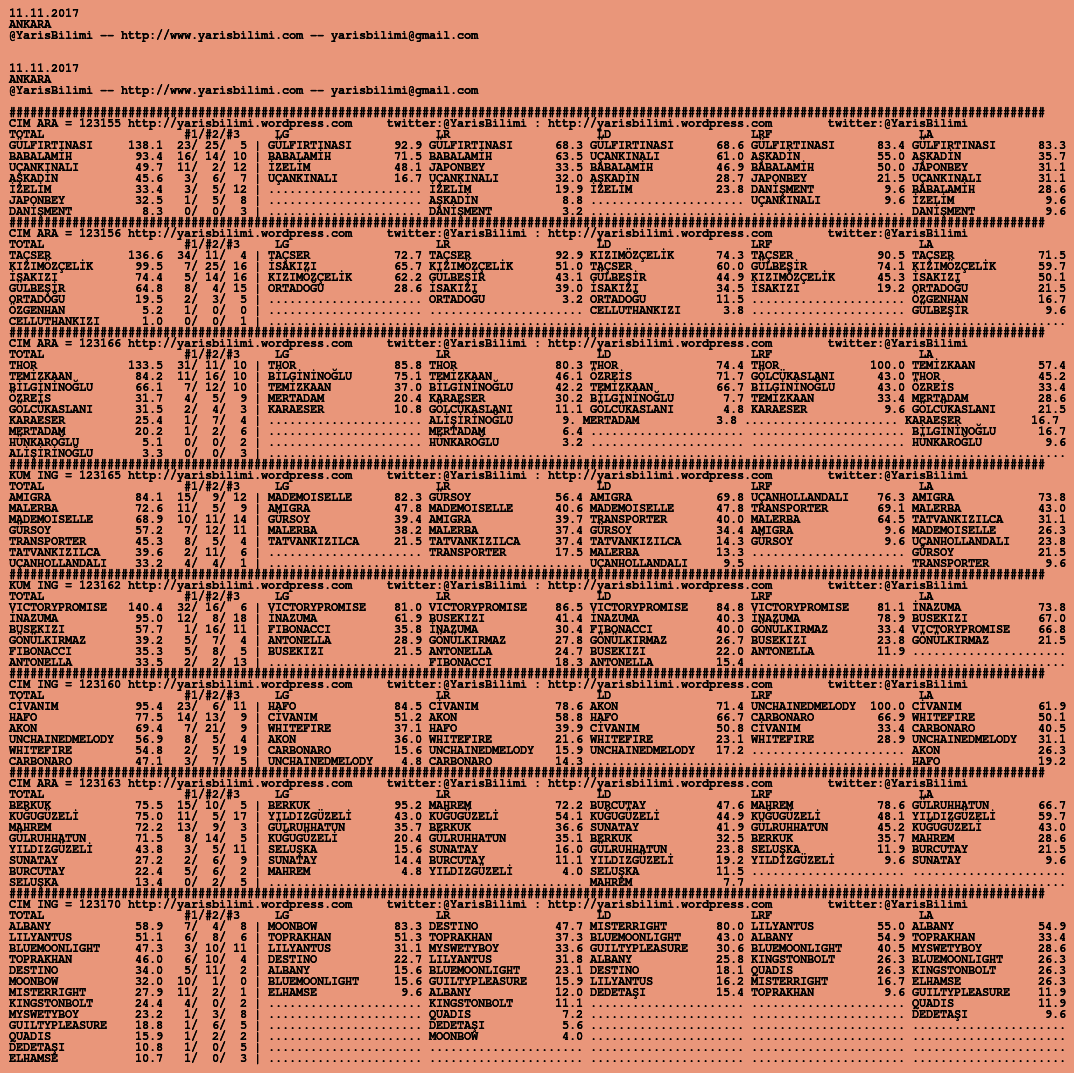 Görsel 11.11.2017.ANKARA tahminleri 10 Cuma Kas 2017 Etiketlerankara Yazan: yarisbilimi | Filed under ankara, yorum ≈ Yorum bırakın