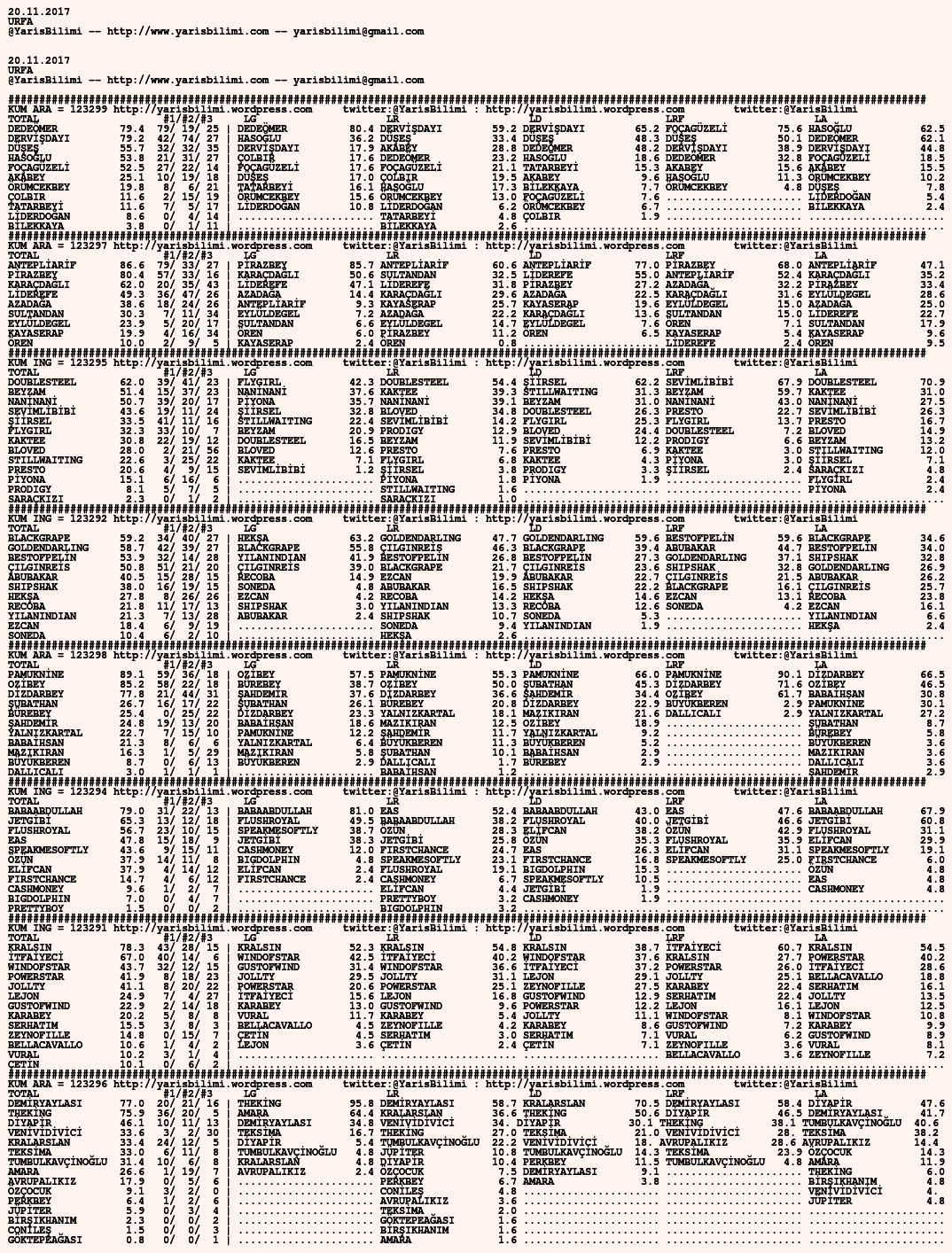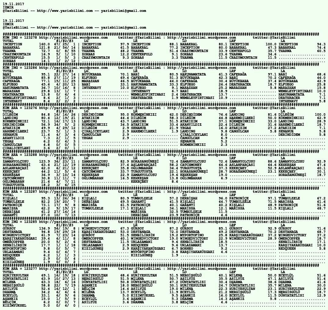20.11.2017.URFA tahminleri 19 Pazar Kas 2017 Posted by yarisbilimi in urfa, yorum ≈ Yorum bırakın Etiketlerurfa