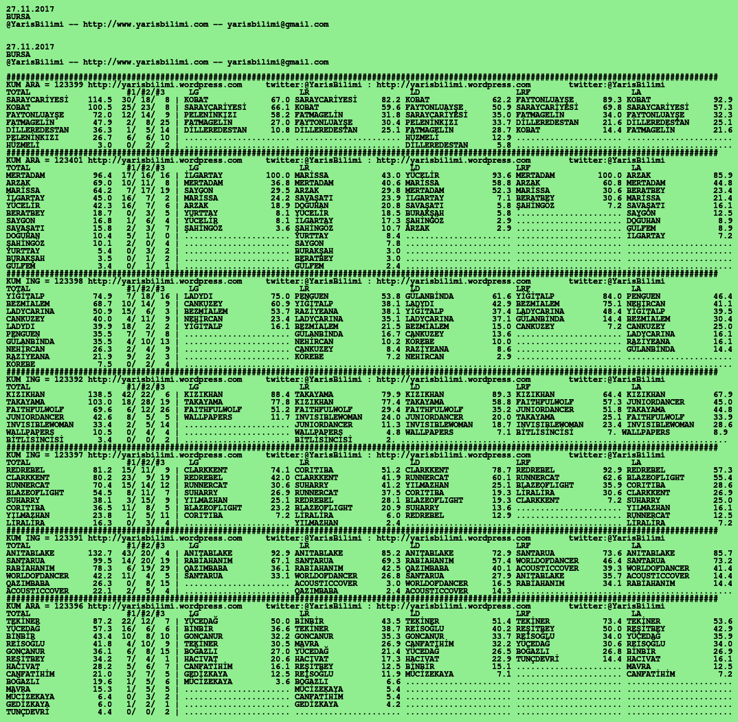 27.11.2017.URFA tahminleri 27 Pazartesi Kas 2017 Posted by yarisbilimi in urfa, yorum ≈ Yorum bırakın Etiketlerurfa