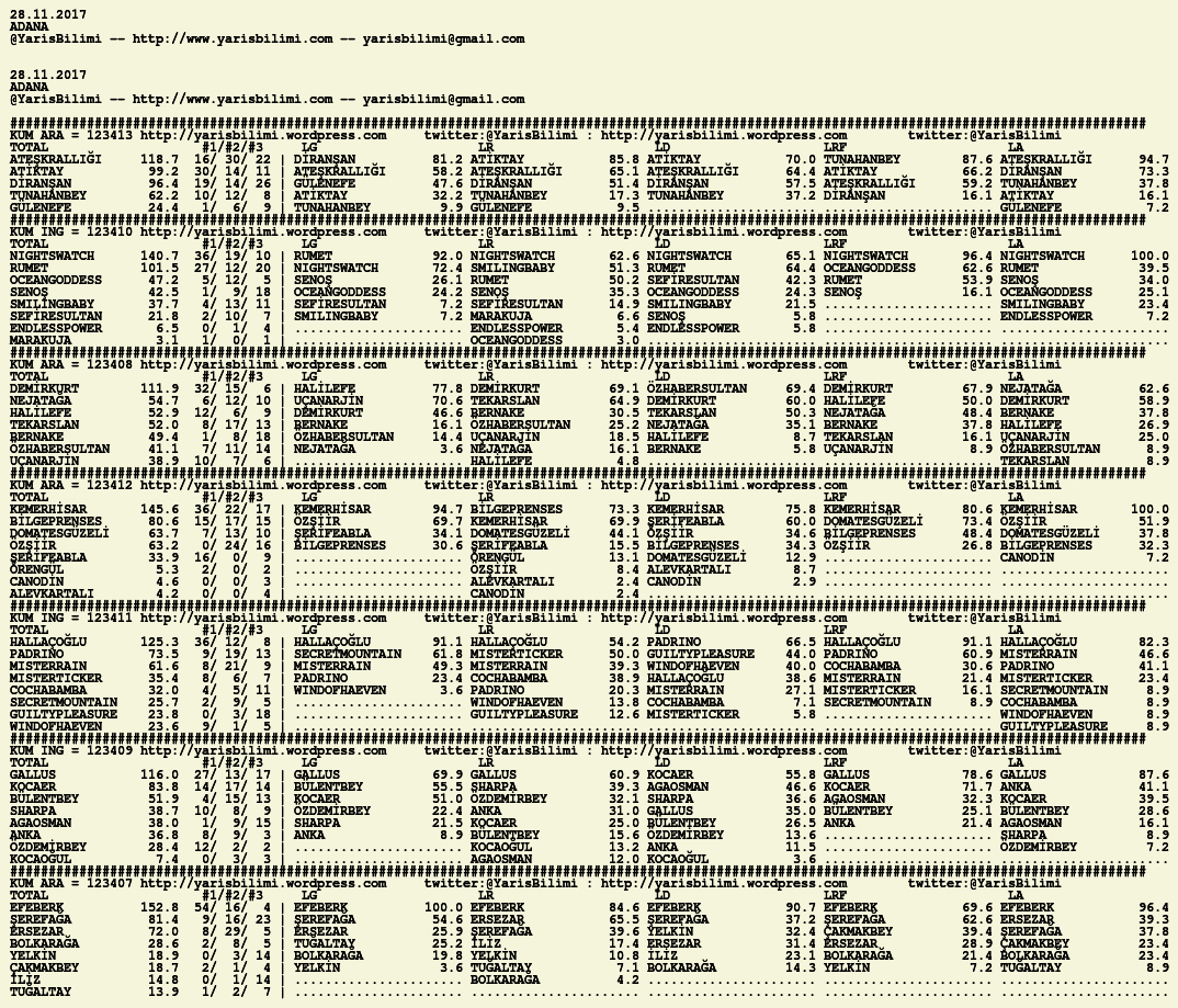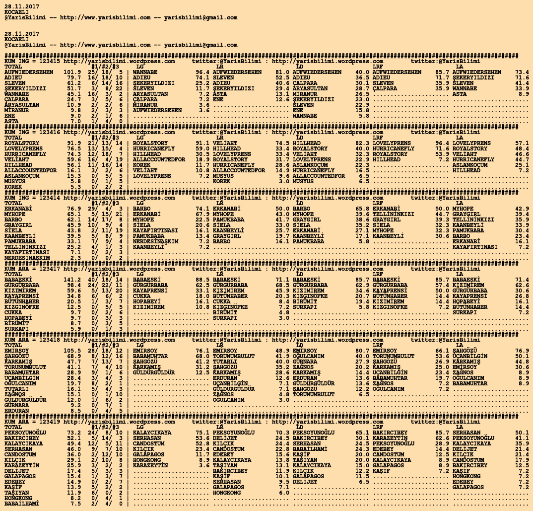 Kendi tercihlerinizi one aliniz. Bu siralamalar sizlere yardim icin hazirlanmaktadir. Ama banko, sablon tercihleriniz kisisel olmali. Eksik verileri olan atlara ozellikle dikkat edilmesini tekrarlar hepinize bol sanslar dileriz.