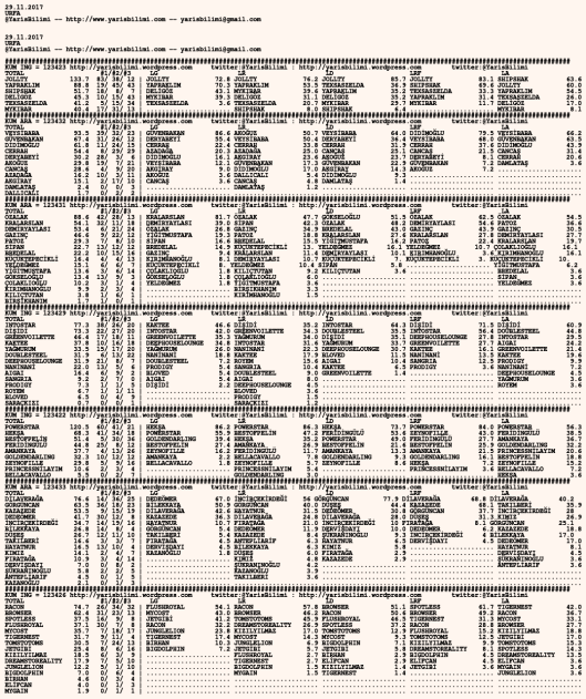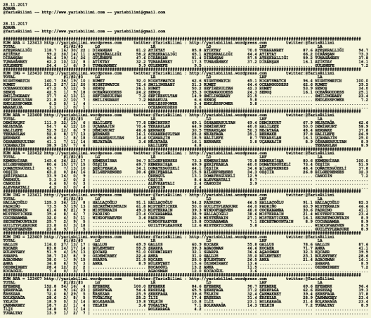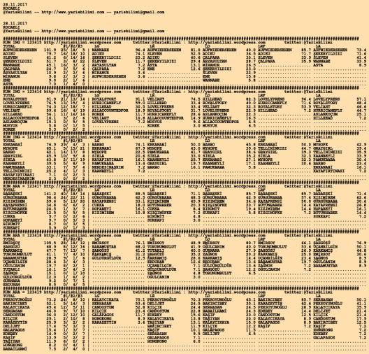28.11.2017.KOCAELI tahminleri