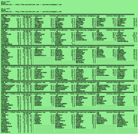 29.11.2017.BURSA tahminleri