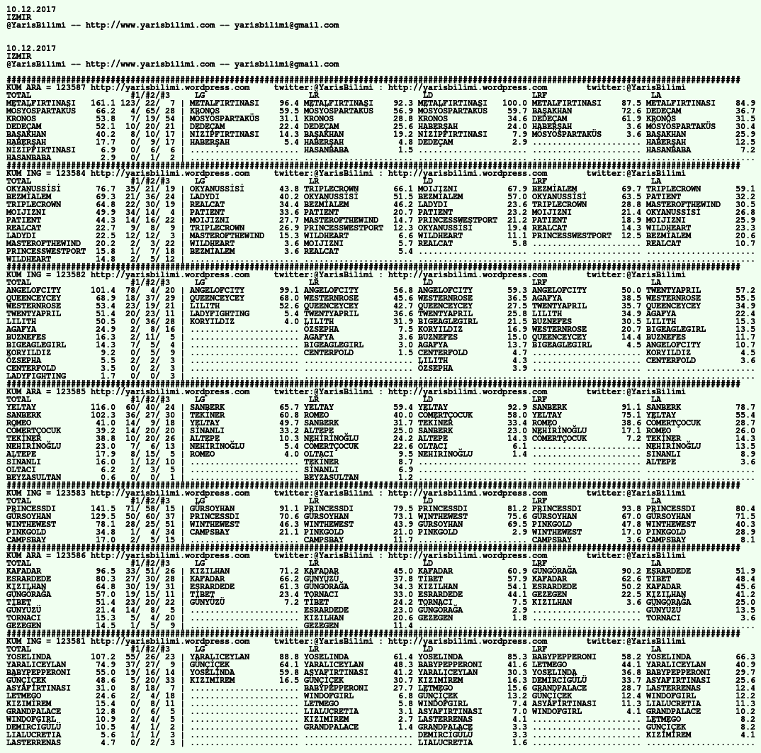 10.12.2017.IZMIR tahminleri 10 Pazar Ara 2017 Posted by yarisbilimi in izmir, yorum ≈ Yorum bırakın Etiketlerizmir