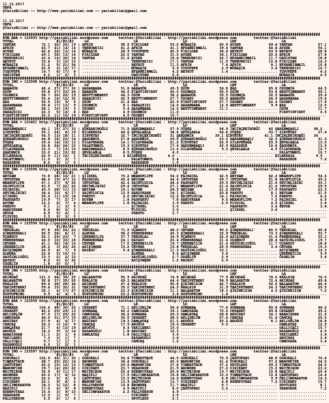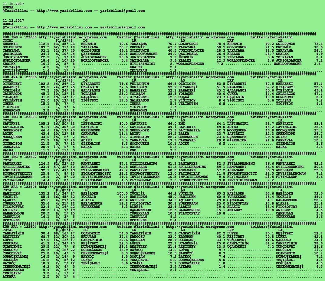 11.12.2017.URFA tahminleri 11 Pazartesi Ara 2017 Posted by yarisbilimi in urfa, yorum ≈ Yorum bırakın Etiketlerurfa