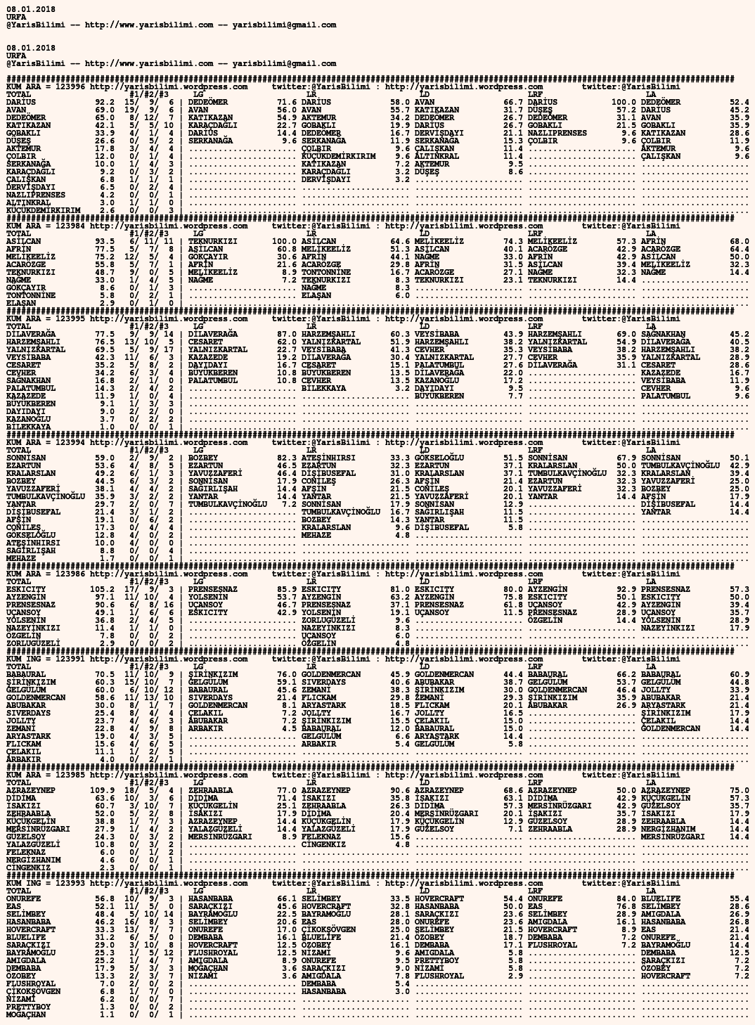 08.01.2018.URFA tahminleri 07 Pazar Oca 2018 Posted by yarisbilimi in urfa, yorum ≈ Yorum bırakın Etiketlerurfa