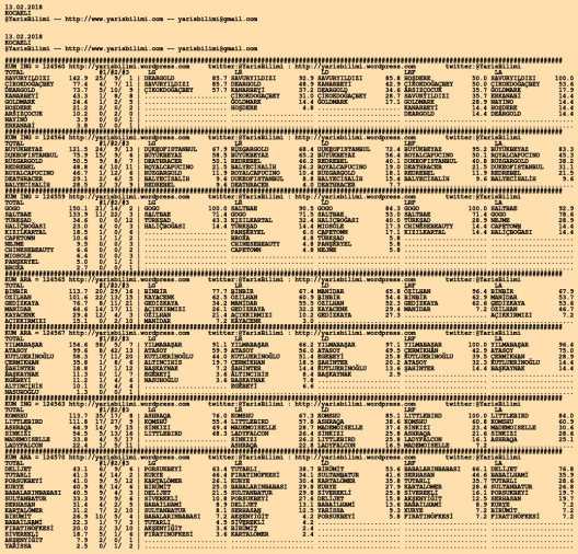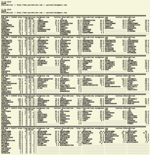 13.02.2018.KOCAELI tahminleri