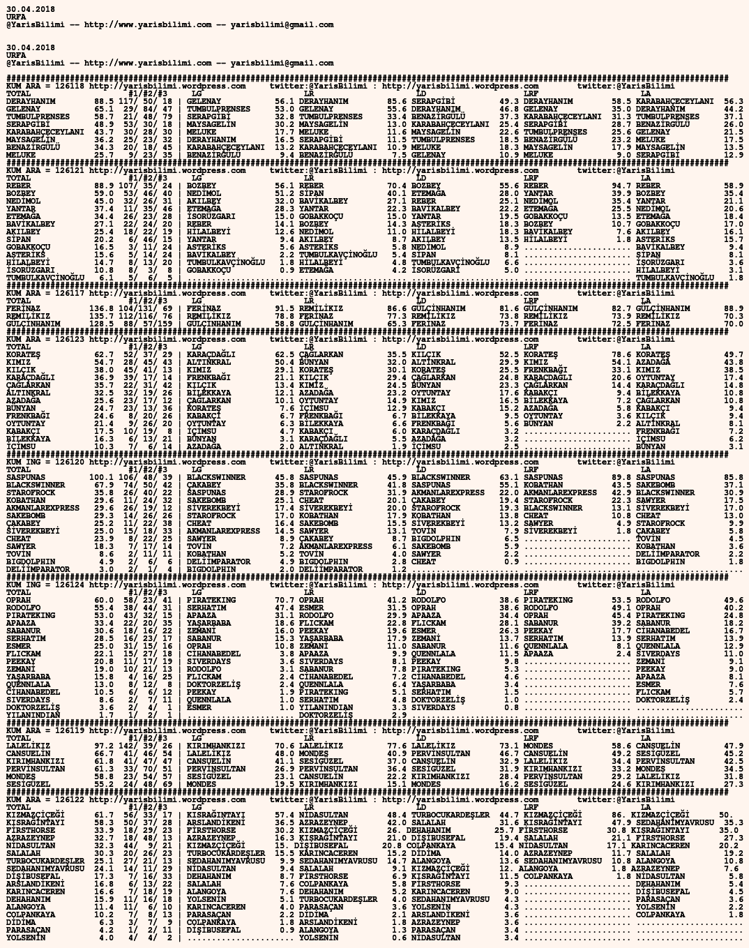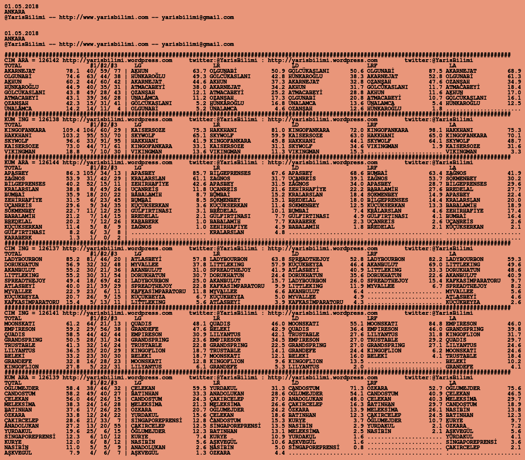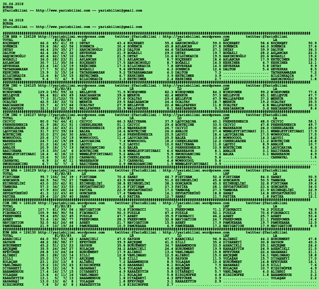 30.04.2018.URFA tahminleri 29 Pazar Nis 2018 Posted by yarisbilimi in urfa, yorum ≈ Yorum bırakın Etiketlerurfa
