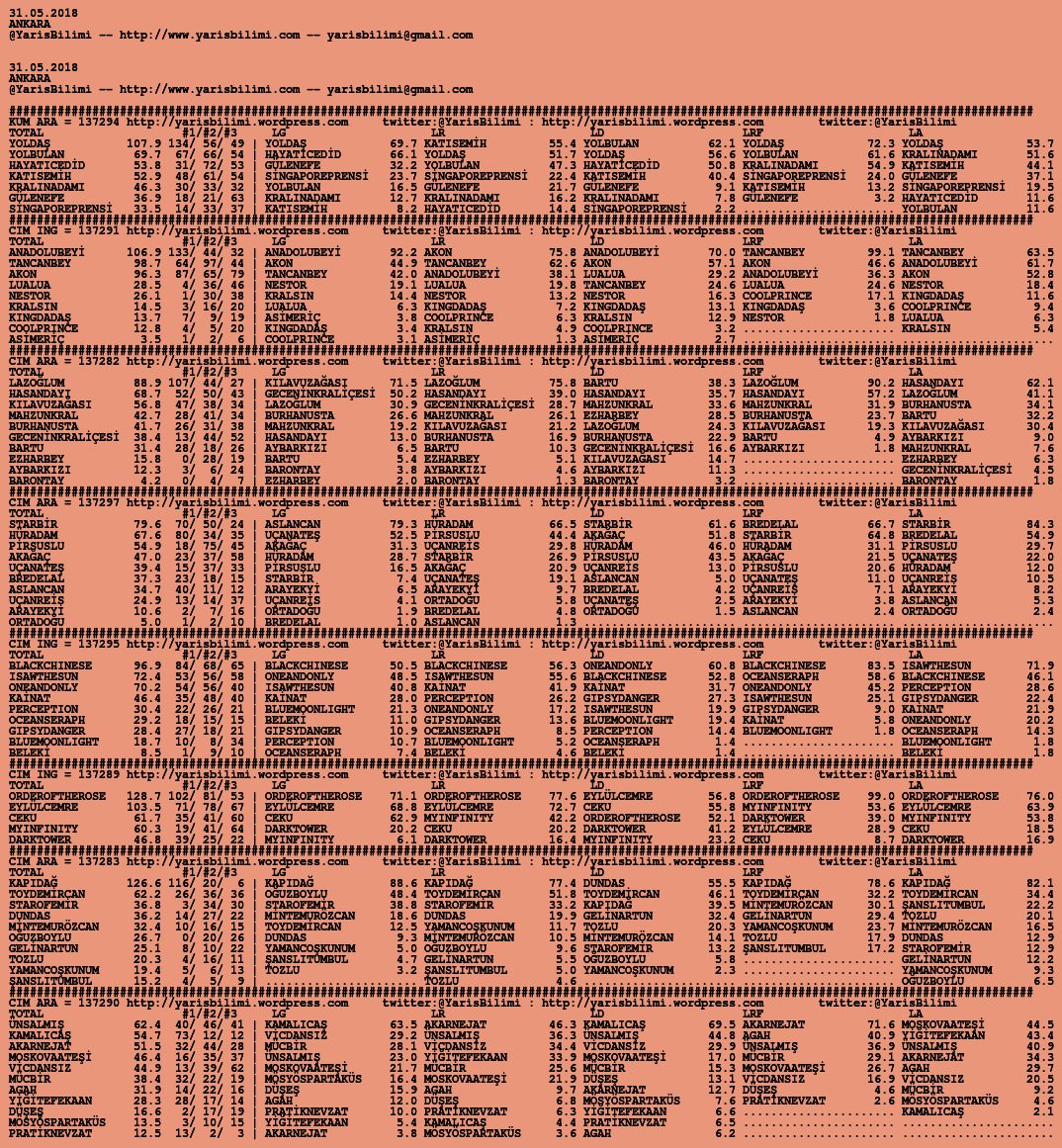 31.05.2018.ANKARA tahminleri 31 Perşembe May 2018 Posted by yarisbilimi in ankara, yorum ≈ Yorum bırakın Etiketlerankara