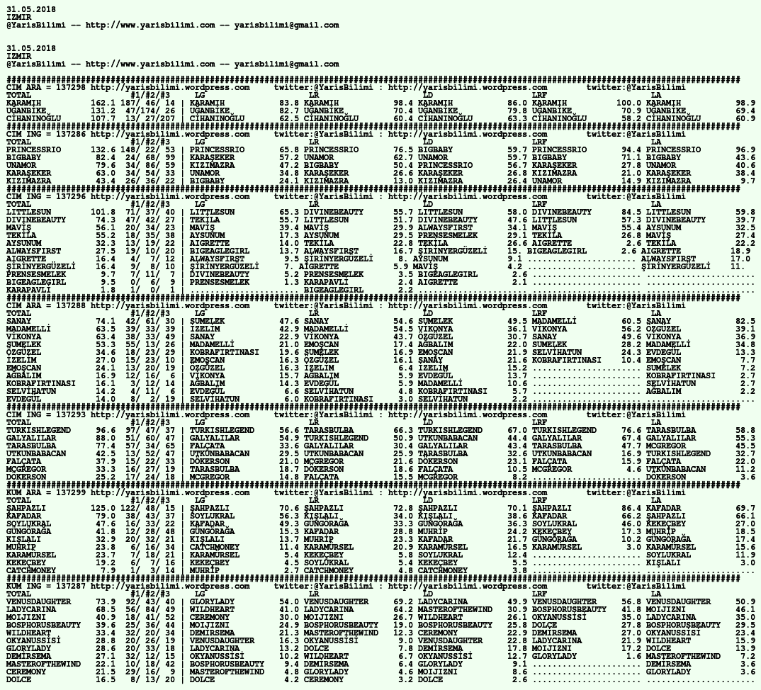 31.05.2018.IZMIR tahminleri 31 Perşembe May 2018 Posted by yarisbilimi in izmir, yorum ≈ Yorum bırakın Etiketlerizmir