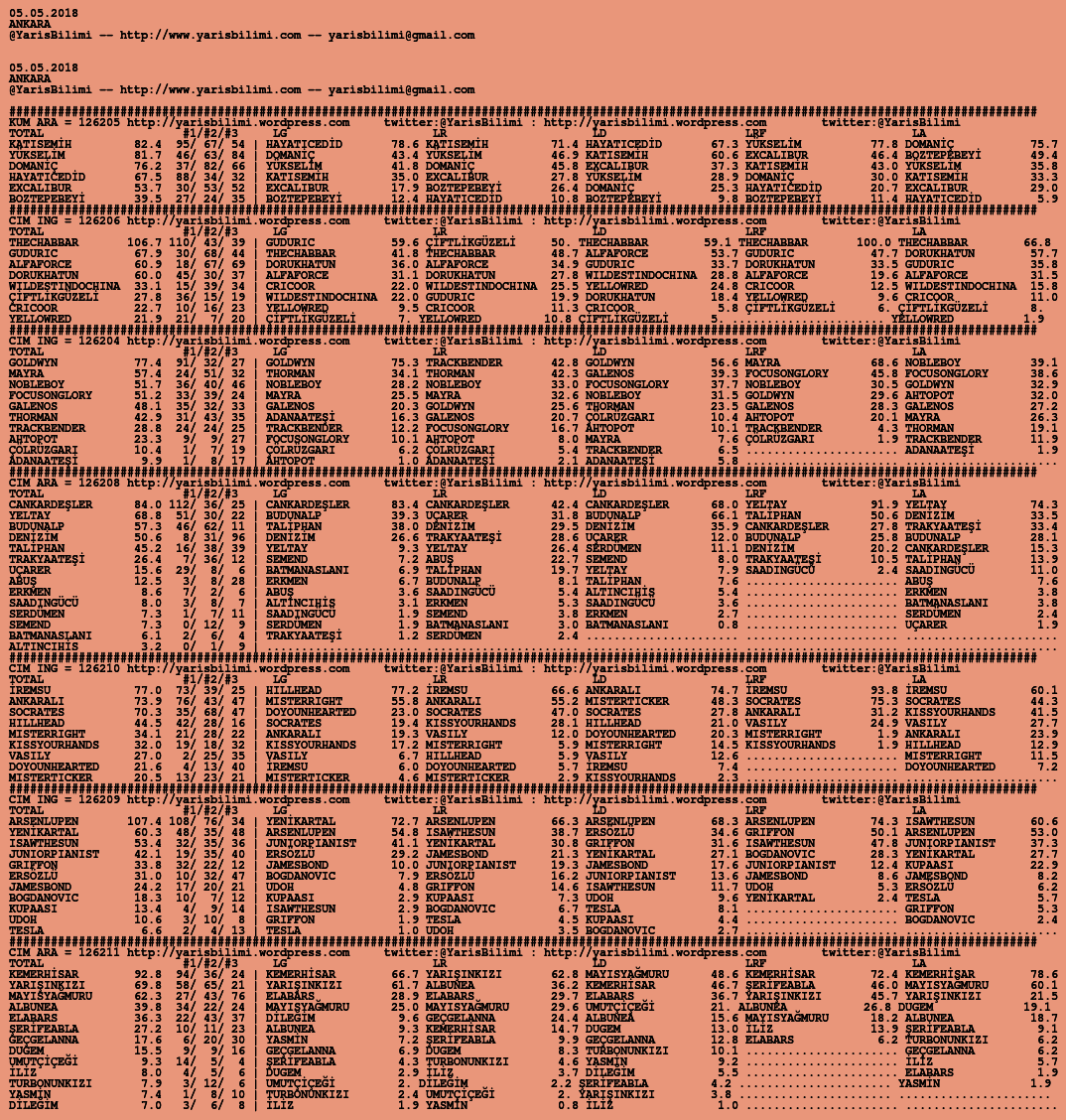 Görsel 05.05.2018.ANKARA tahminleri 04 Cuma May 2018 Etiketlerankara Yazan: yarisbilimi | Filed under ankara, yorum ≈ Yorum bırakın