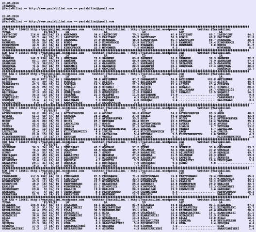 Görsel 23.05.2018.ISTANBUL tahminleri 22 Salı May 2018 Etiketleristanbul Yazan: yarisbilimi | Filed under istanbul, yorum ≈ Yorum bırakın
