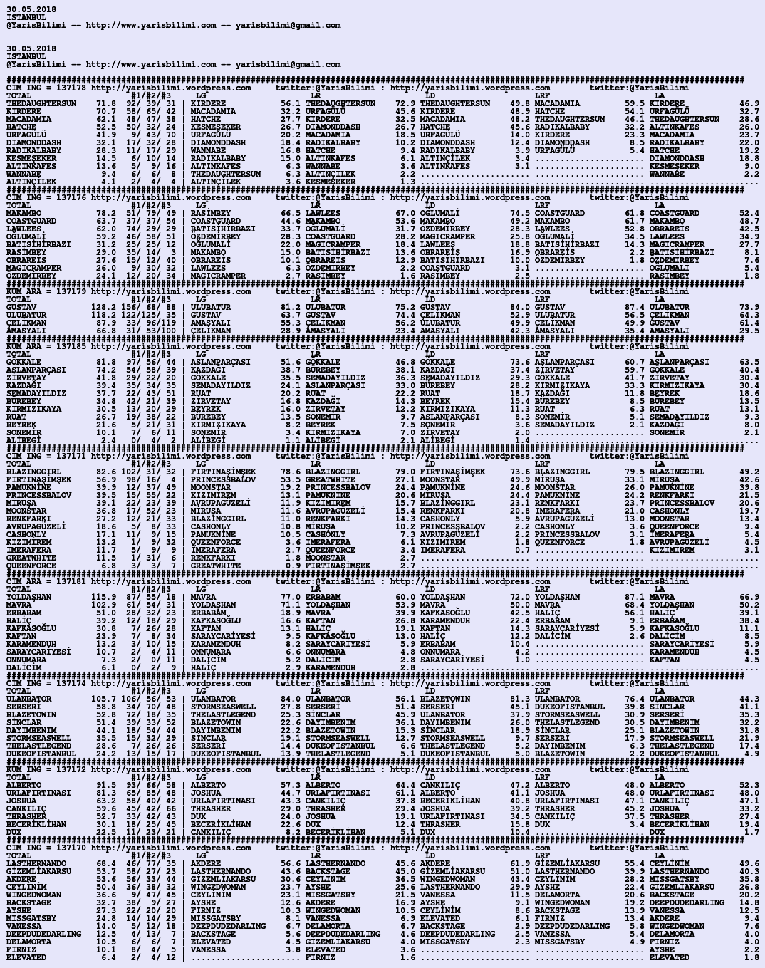 Görsel 29.05.2018.ANKARA tahminleri 28 Pazartesi May 2018 Etiketlerankara Yazan: yarisbilimi | Filed under ankara, yorum ≈ Yorum bırakın