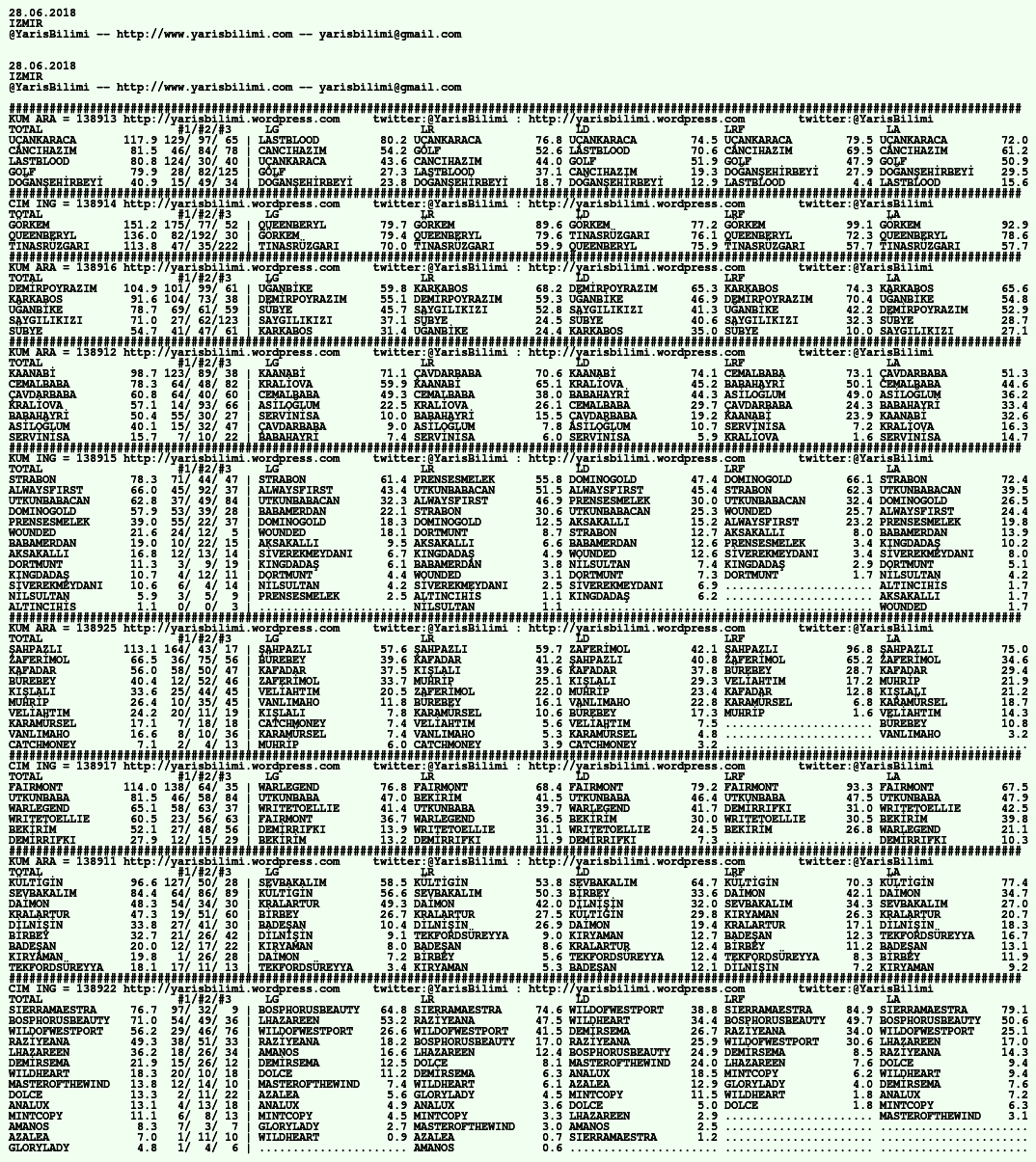 28.06.2018.IZMIR tahminleri 27 Çarşamba Haz 2018 Posted by yarisbilimi in izmir, yorum ≈ Yorum bırakın Etiketlerizmir