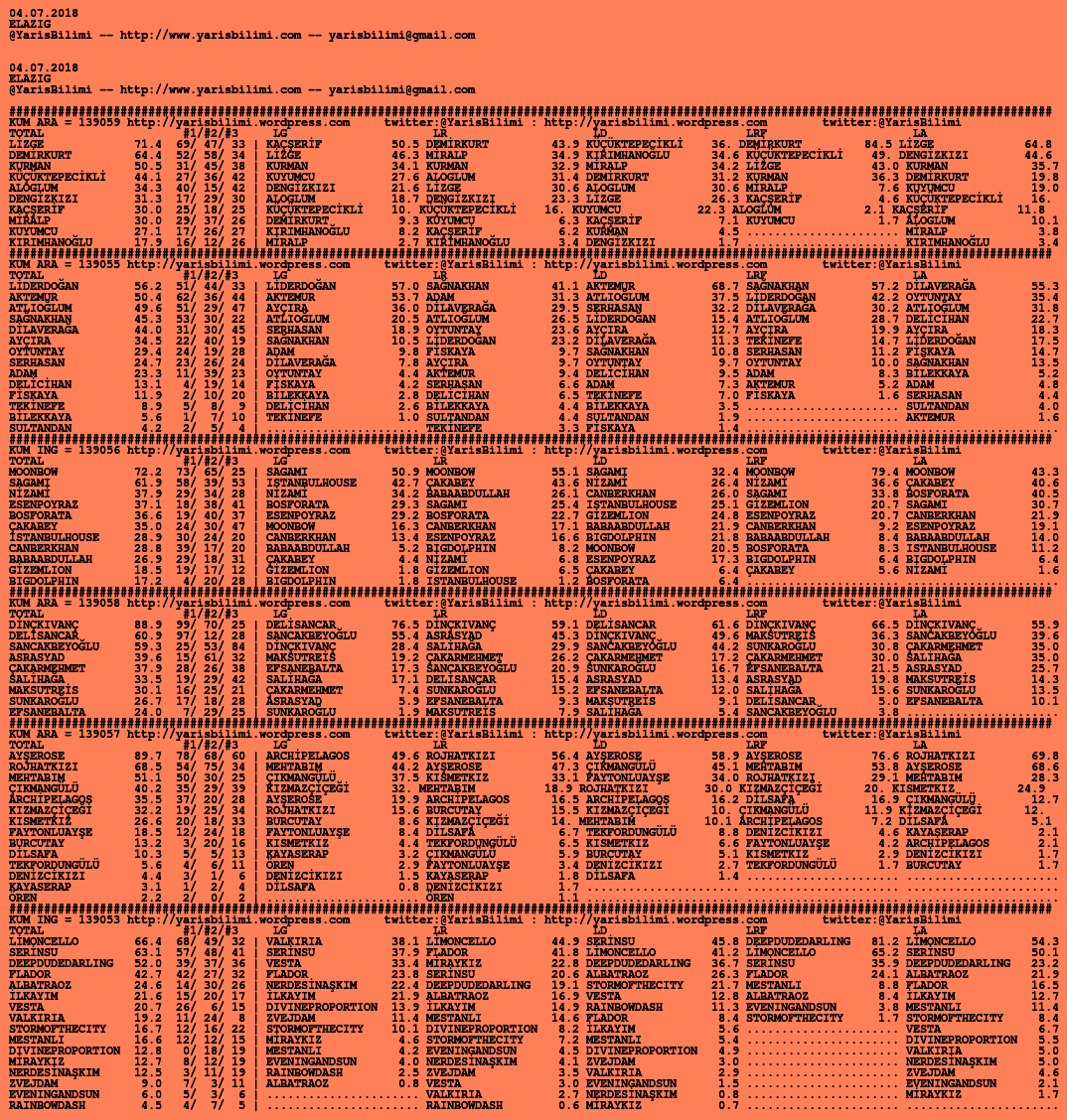 04.07.2018.ELAZIG tahminleri 03 Salı Tem 2018 Posted by yarisbilimi in elazig, yorum ≈ Yorum bırakın Etiketlerelazig