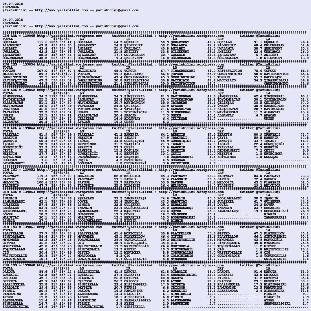 04.07.2018.ISTANBUL tahminleri 03 Salı Tem 2018 Posted by yarisbilimi in istanbul, yorum ≈ Yorum bırakın Etiketleristanbul