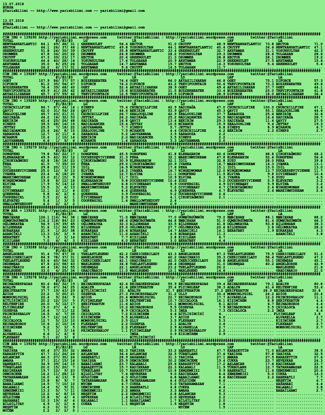 Görsel 14.07.2018.ANKARA tahminleri 13 Cuma Tem 2018 Etiketlerankara Yazan: yarisbilimi | Filed under ankara, yorum ≈ Yorum bırakın