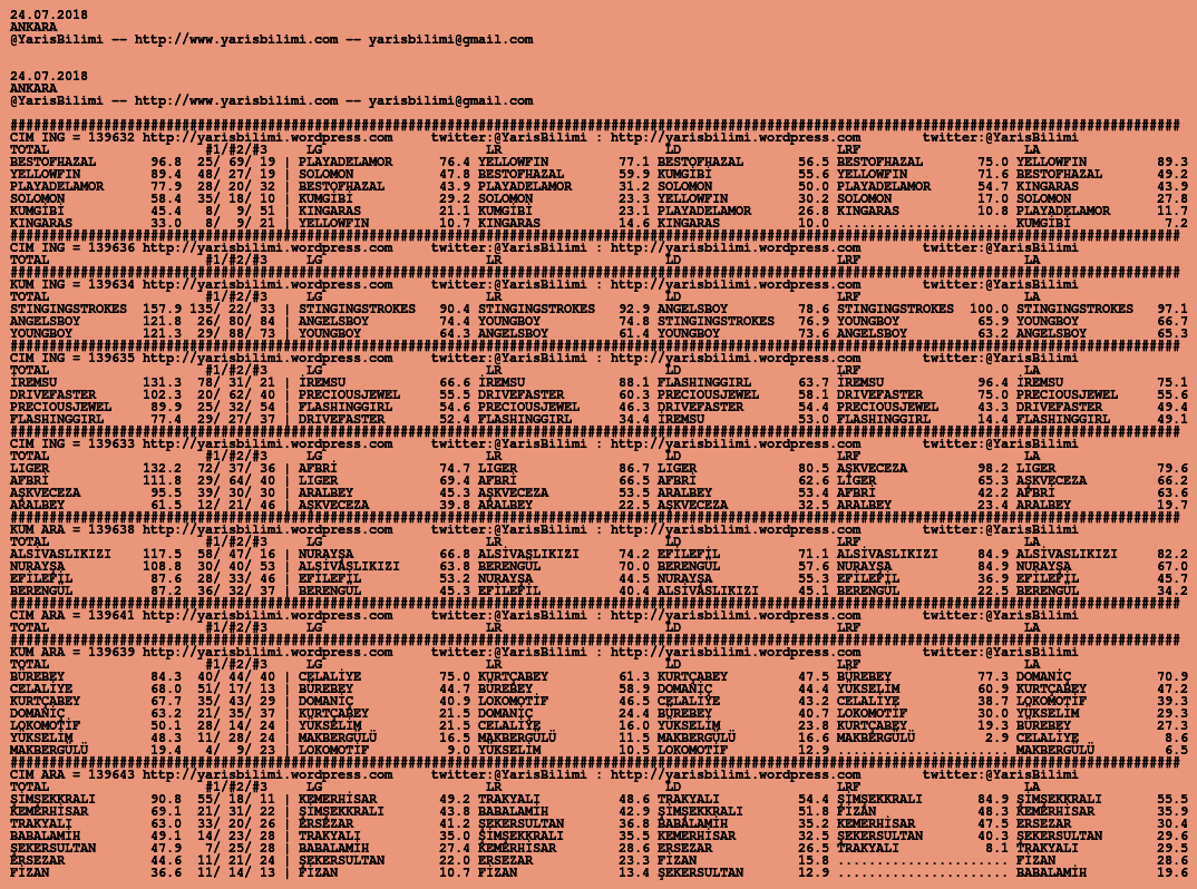 Görsel 24.07.2018.ANKARA tahminleri 23 Pazartesi Tem 2018 Etiketlerankara Yazan: yarisbilimi | Filed under ankara, yorum ≈ Yorum bırakın