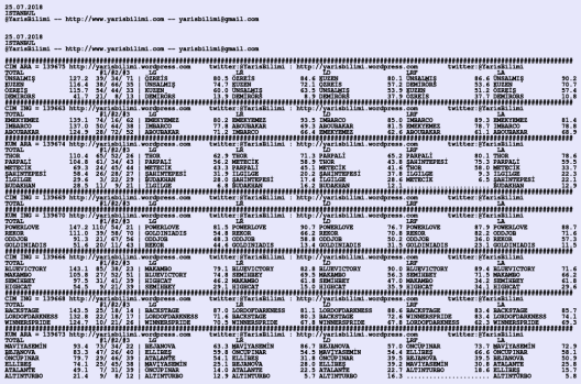 Görsel 25.07.2018.ISTANBUL tahminleri 24 Salı Tem 2018 Etiketleristanbul Yazan: yarisbilimi | Filed under istanbul, yorum ≈ Yorum bırakın