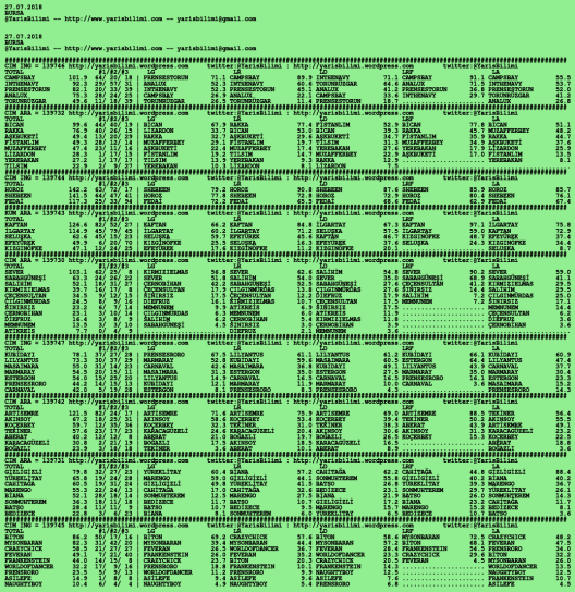 arkadaslar eksiklikler veri probleminden, ivedi sekilde cozmem mumkun degil. Tatildeyim, erisimim yok maalesef