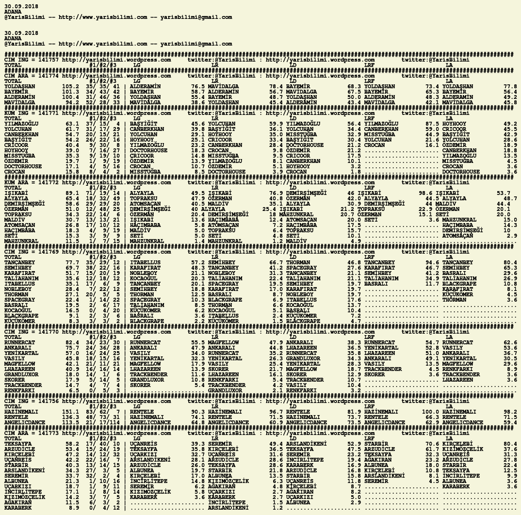30.09.2018.ADANA tahminleri 29 Cumartesi Eyl 2018 Posted by yarisbilimi in adana, yorum ≈ Yorum bırakın Etiketleradana