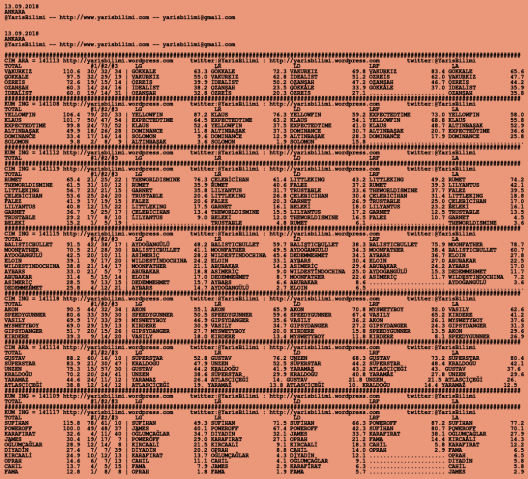 Görsel 14.09.2018.ISTANBUL tahminleri 13 Perşembe Eyl 2018 Etiketleristanbul Yazan: yarisbilimi | Filed under istanbul, yorum ≈ 2 Yorum