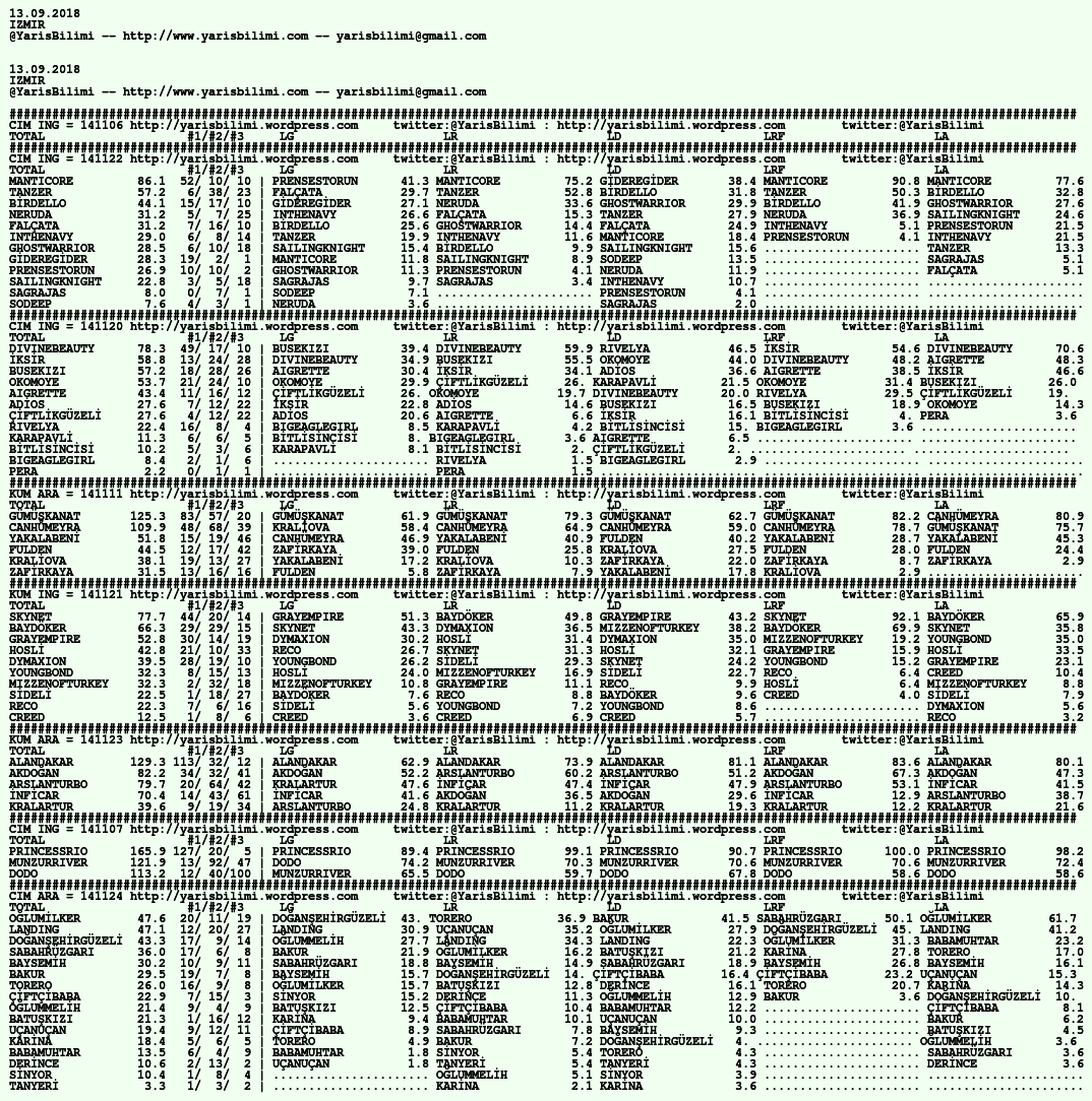 13.09.2018.IZMIR tahminleri 13 Perşembe Eyl 2018 Posted by yarisbilimi in izmir, yorum ≈ Yorum bırakın Etiketlerizmir