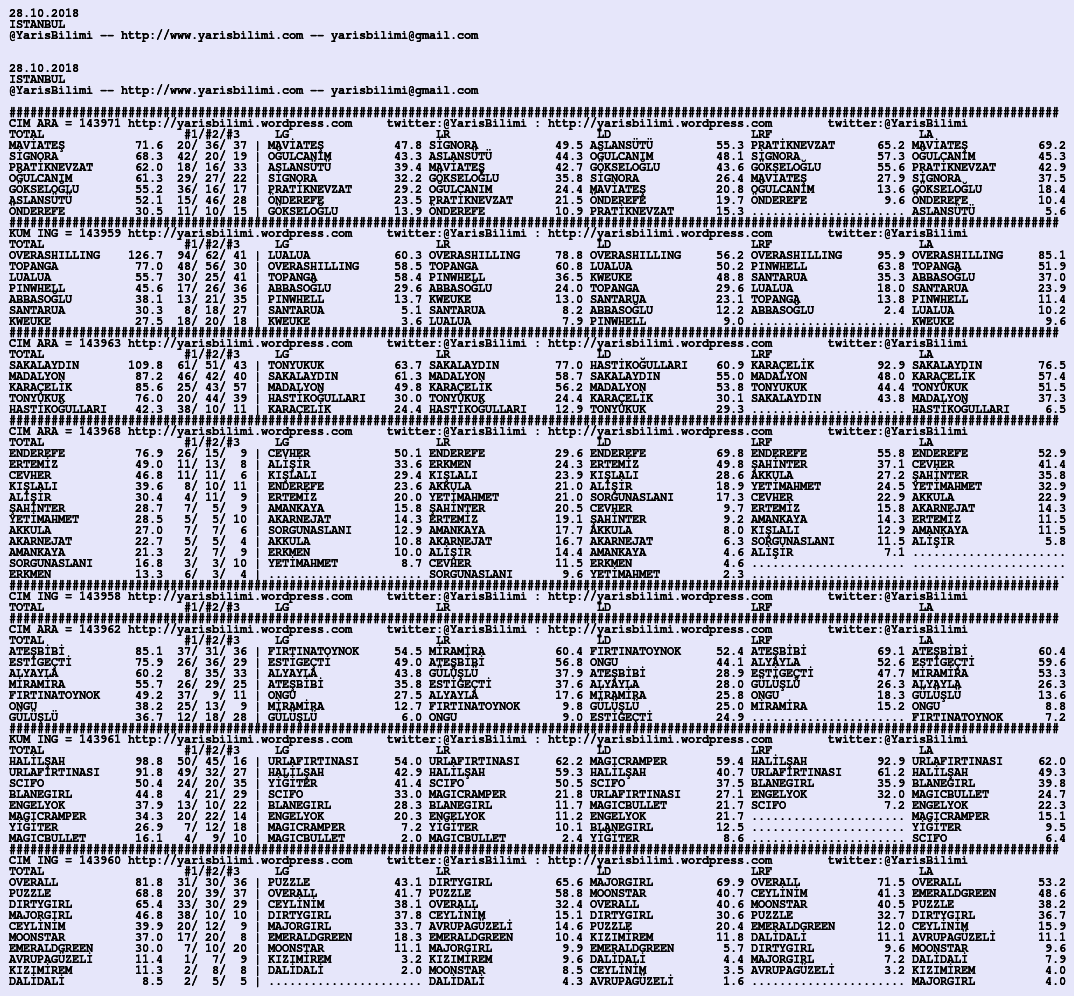 28.10.2018.ISTANBUL tahminleri 27 Cumartesi Eki 2018 Posted by yarisbilimi in istanbul, yorum ≈ Yorum bırakın Etiketleristanbul