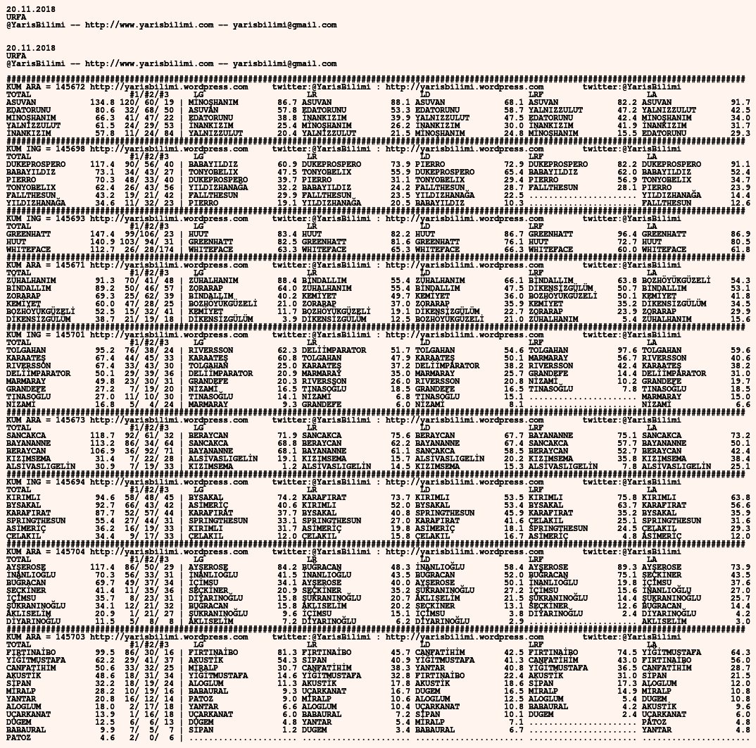 Görsel 20.11.2018.URFA tahminleri 19 Pazartesi Kas 2018 Etiketlerurfa Yazan: yarisbilimi | Filed under urfa, yorum ≈ Yorum bırakın
