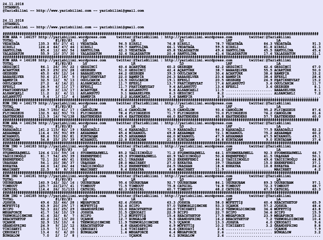 Görsel 24.11.2018.ISTANBUL tahminleri 23 Cuma Kas 2018 Etiketleristanbul Yazan: yarisbilimi | Filed under istanbul, yorum ≈ Yorum bırakın