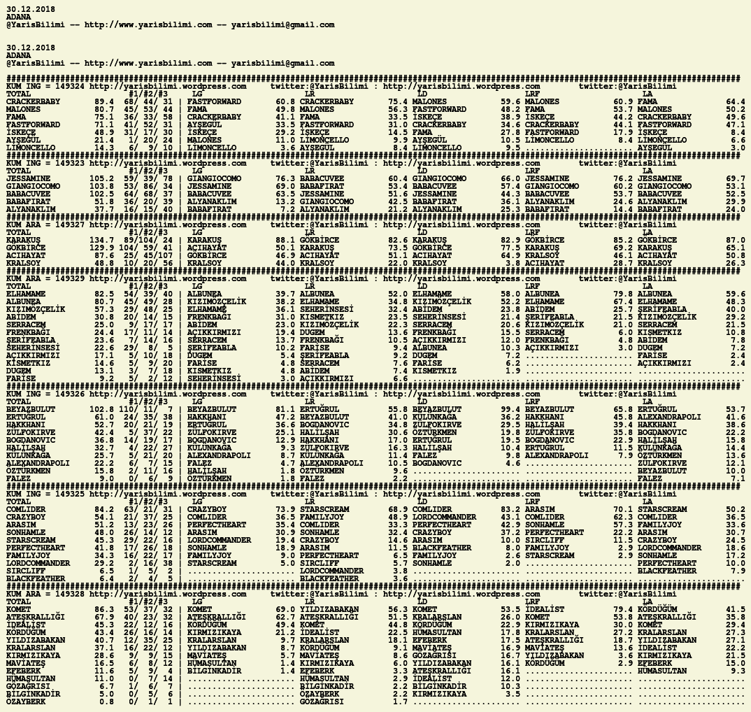 30.12.2018.ADANA tahminleri 29 Cumartesi Ara 2018 Posted by yarisbilimi in adana, yorum ≈ Yorum bırakın Etiketleradana