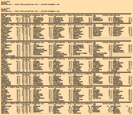 11.12.2018.ADANA tahminleri 10 Pazartesi Ara 2018 Posted by yarisbilimi in adana, yorum ≈ Yorum bırakın Etiketleradana