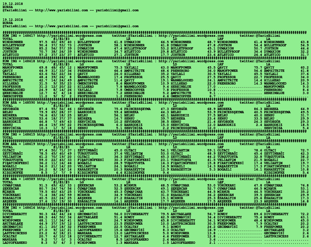 20.12.2018.URFA tahminleri 19 Çarşamba Ara 2018 Posted by yarisbilimi in urfa, yorum ≈ Yorum bırakın Etiketlerurfa