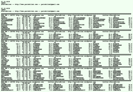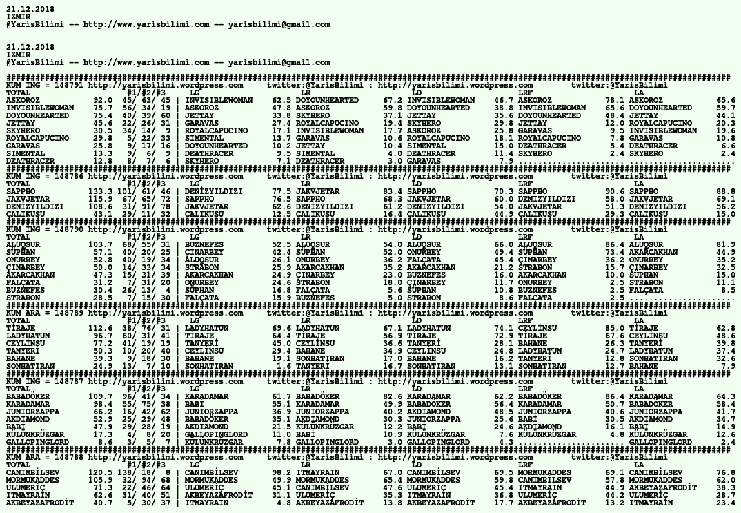 21.12.2018.IZMIR tahminleri 20 Perşembe Ara 2018 Posted by yarisbilimi in izmir, yorum ≈ Yorum bırakın Etiketlerizmir