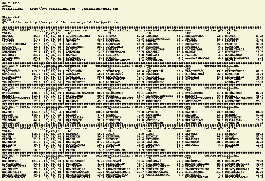 06.01.2019.ADANA tahminleri 06 Pazar Oca 2019 Posted by yarisbilimi in adana, yorum ≈ Yorum bırakın Etiketleradana