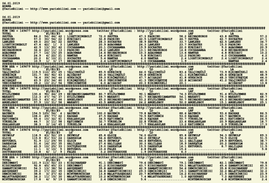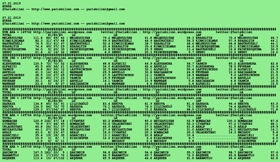 07.01.2019.BURSA tahminleri 06 Pazar Oca 2019 Posted by yarisbilimi in bursa, yorum ≈ Yorum bırakın Etiketlerbursa