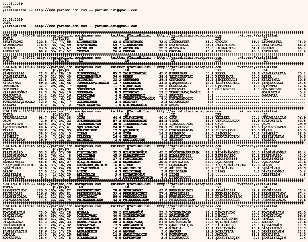 07.01.2019.URFA tahminleri 06 Pazar Oca 2019 Posted by yarisbilimi in urfa, yorum ≈ Yorum bırakın Etiketlerurfa