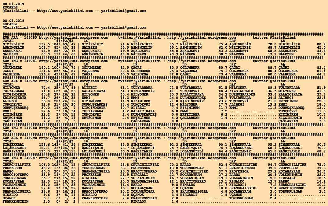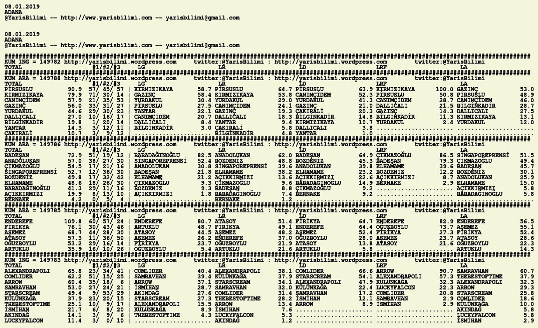Görsel 08.01.2019.ADANA tahminleri 07 Pazartesi Oca 2019 Etiketleradana Yazan: yarisbilimi | Filed under adana, yorum ≈ Yorum bırakın