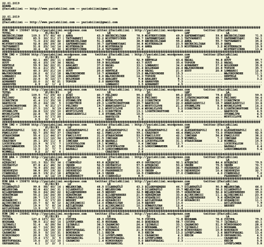 Görsel 22.01.2019.ADANA tahminleri 21 Pazartesi Oca 2019 Etiketleradana Yazan: yarisbilimi | Filed under adana, yorum ≈ Yorum bırakın