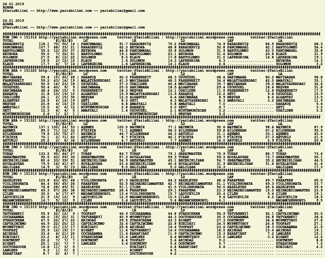 Görsel 26.01.2019.ADANA tahminleri 26 Cumartesi Oca 2019 Etiketleradana Yazan: yarisbilimi | Filed under adana, yorum ≈ Yorum bırakın