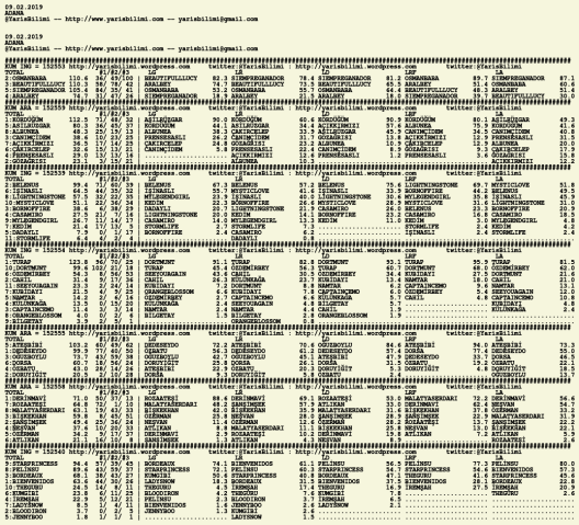 09.02.2019.ADANA tahminleri 09 Cumartesi Şub 2019 Posted by yarisbilimi in adana, yorum ≈ Yorum bırakın Etiketleradana