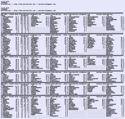 16.02.2019.ISTANBUL tahminleri 16 Cumartesi Şub 2019 Posted by yarisbilimi in istanbul, yorum ≈ 2 Yorum Etiketleristanbul