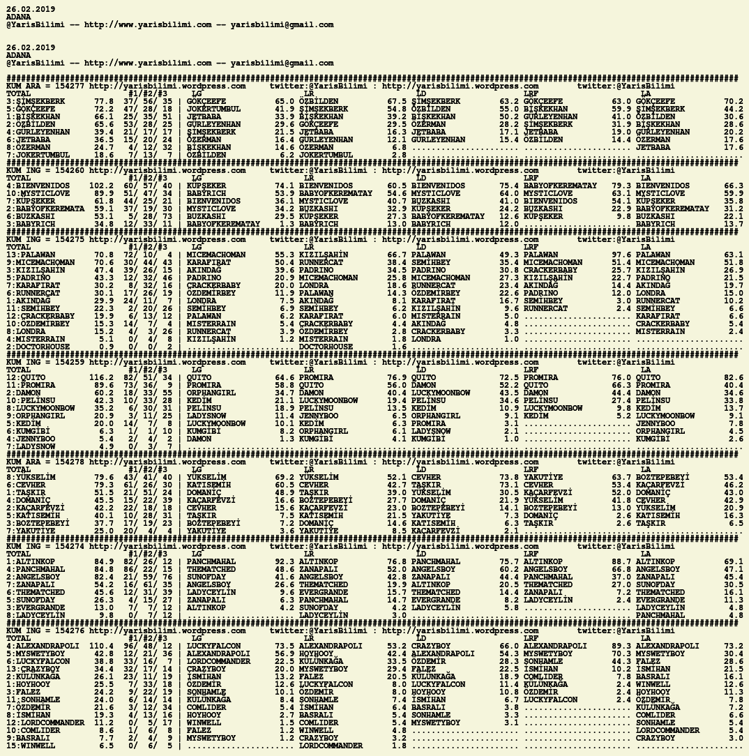 26.02.2019.ADANA tahminleri 26 Salı Şub 2019 Posted by yarisbilimi in adana, yorum ≈ Yorum bırakın Etiketleradana