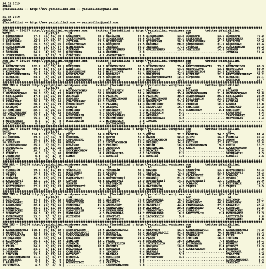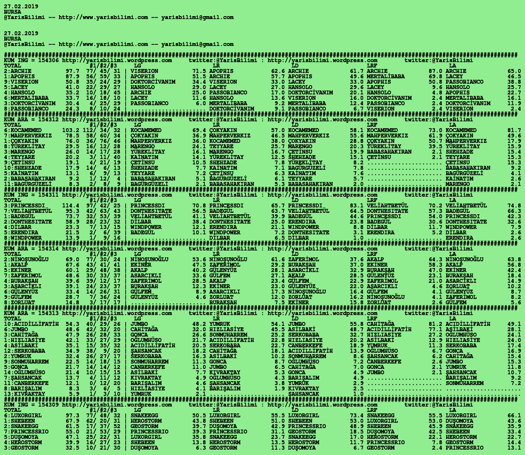 27.02.2019.BURSA tahminleri 27 Çarşamba Şub 2019 Posted by yarisbilimi in bursa, yorum ≈ Yorum bırakın Etiketlerbursa
