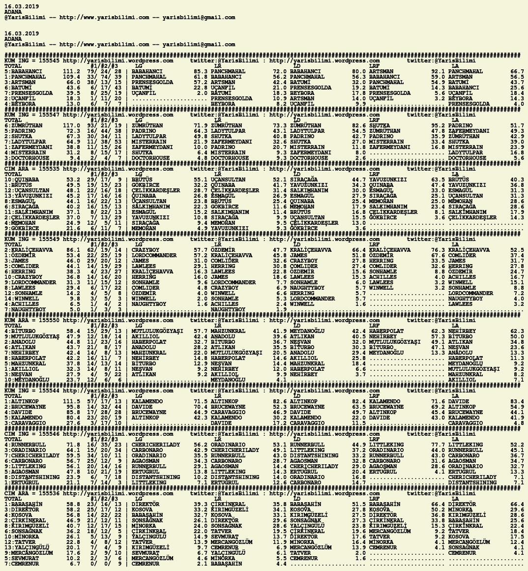 Görsel 16.03.2019.ADANA tahminleri 15 Cuma Mar 2019 Etiketleradana Yazan: yarisbilimi | Filed under adana, yorum ≈ Yorum bırakın