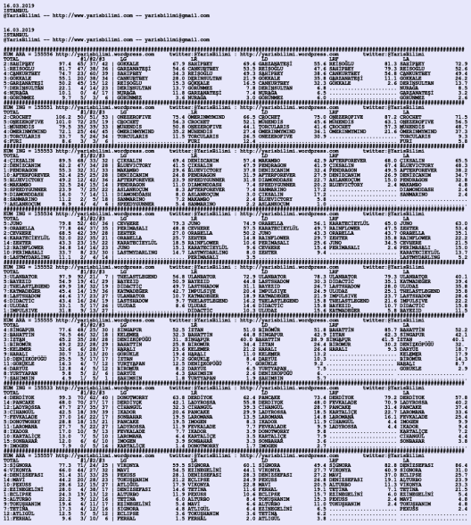 Görsel 16.03.2019.ISTANBUL tahminleri 15 Cuma Mar 2019 Etiketleristanbul Yazan: yarisbilimi | Filed under istanbul, yorum ≈ Yorum bırakın