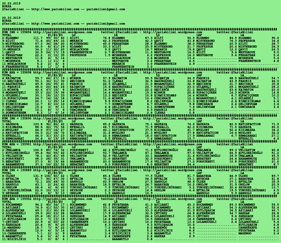 20.03.2019.BURSA tahminleri 19 Salı Mar 2019 Posted by yarisbilimi in bursa, yorum ≈ Yorum bırakın Etiketlerbursa
