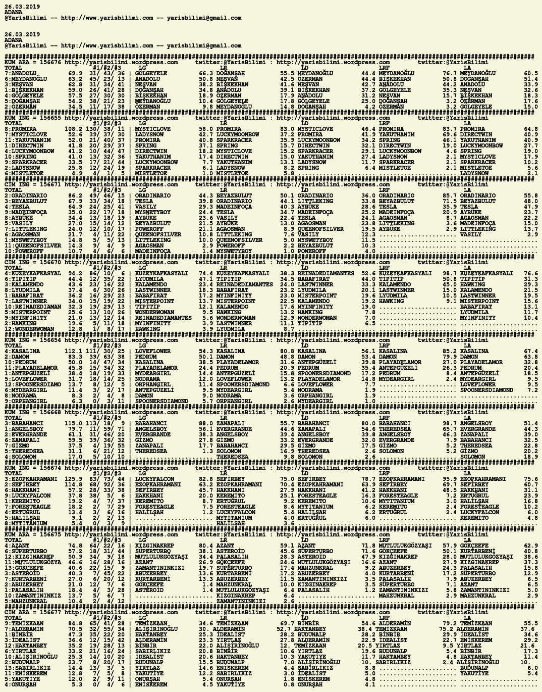 26.03.2019.ADANA tahminleri 25 Pazartesi Mar 2019 Posted by yarisbilimi in adana, yorum ≈ Yorum bırakın Etiketleradana